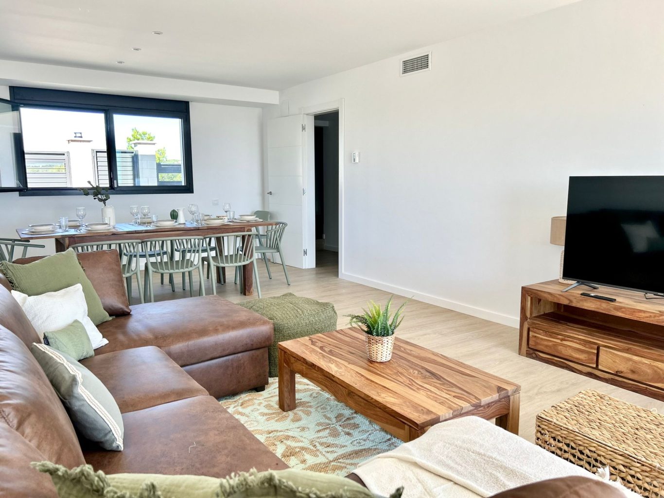 En el nivel intermedio se encuentra la zona de día, con una cocina totalmente equipada, un acogedor salón con Smart TV y un amplio comedor preparado para 8 a 10 personas. Todo pensado para compartir momentos en familia o con amigos en un ambiente de lujo y comodidad.