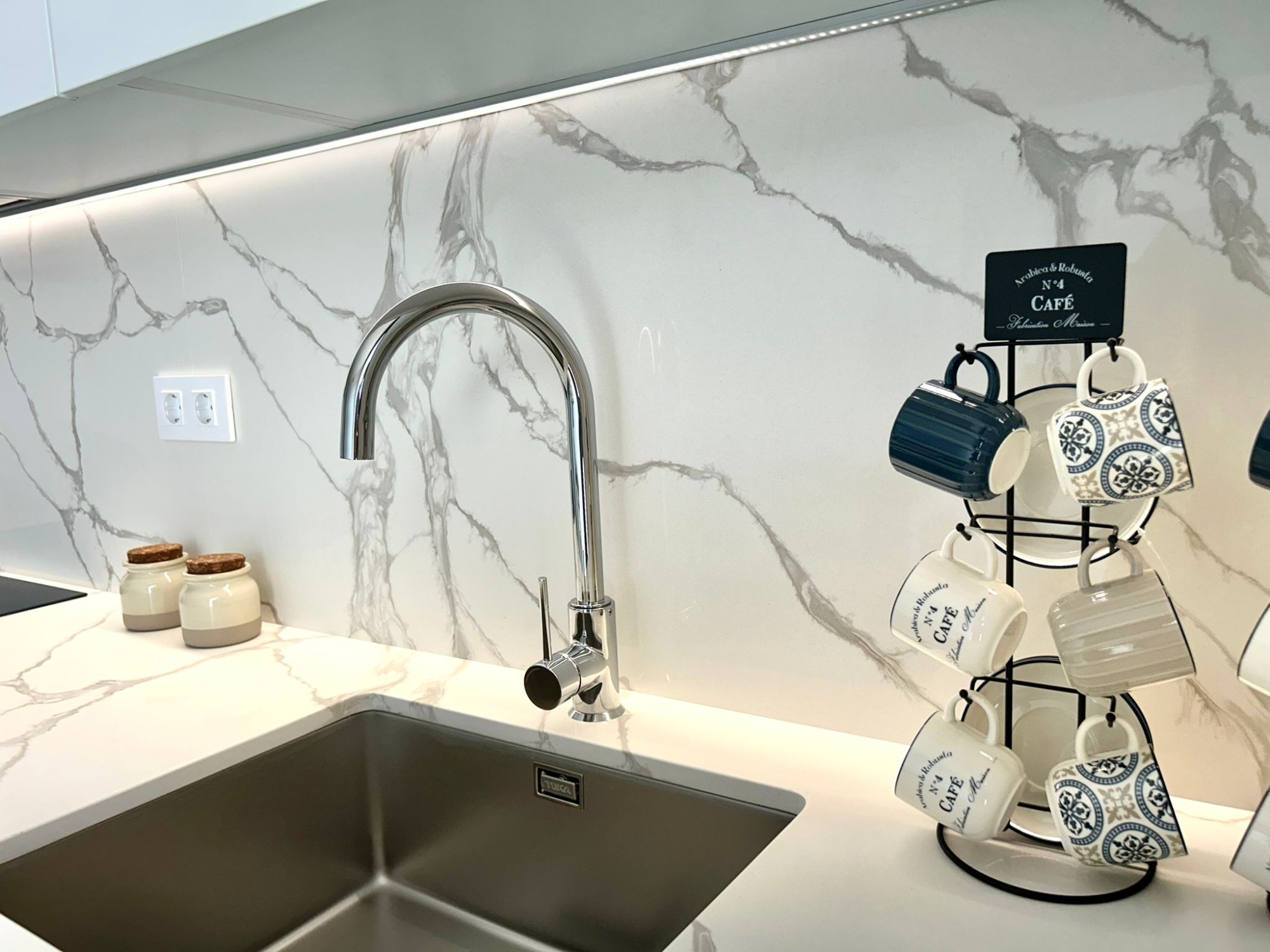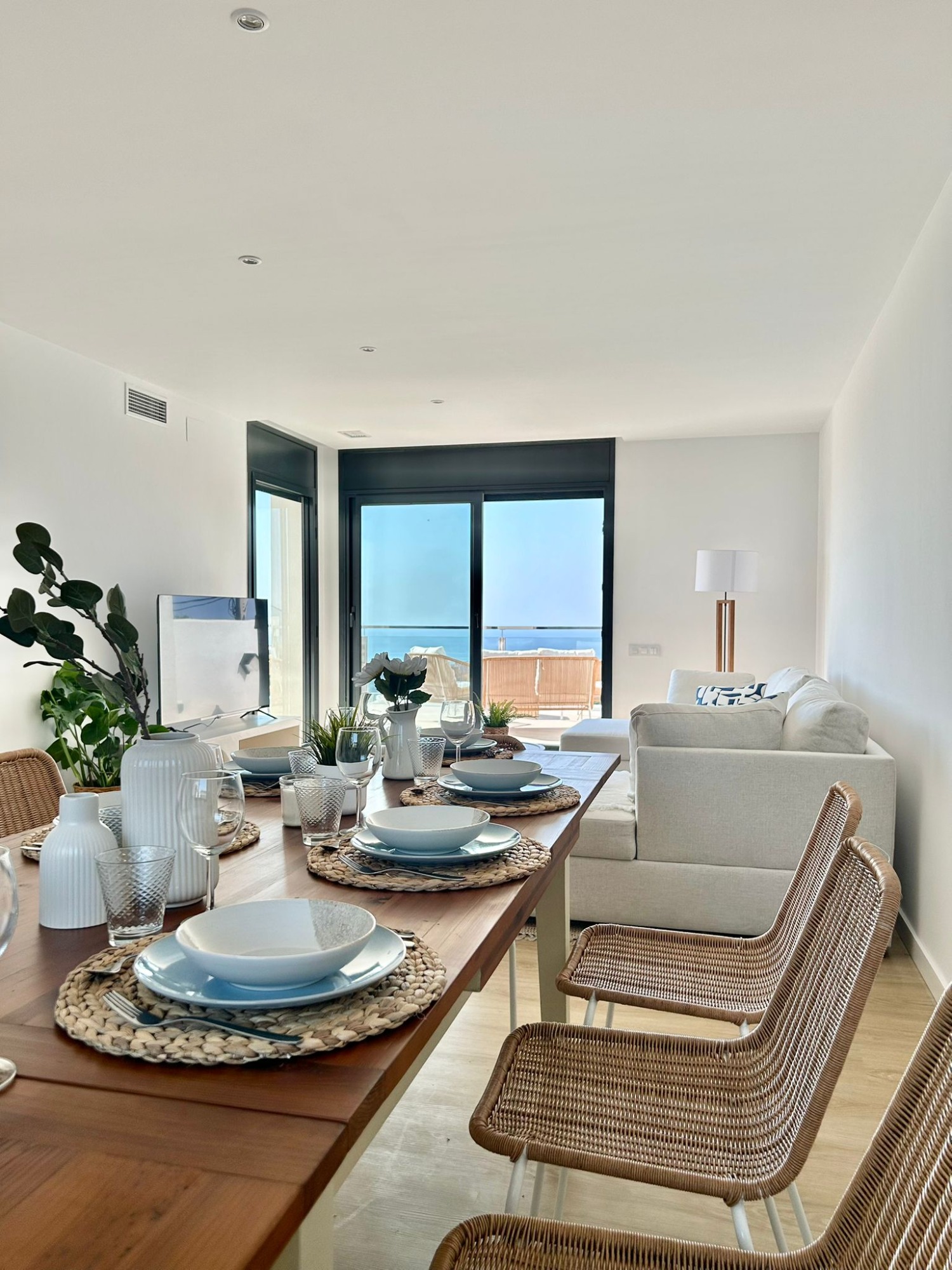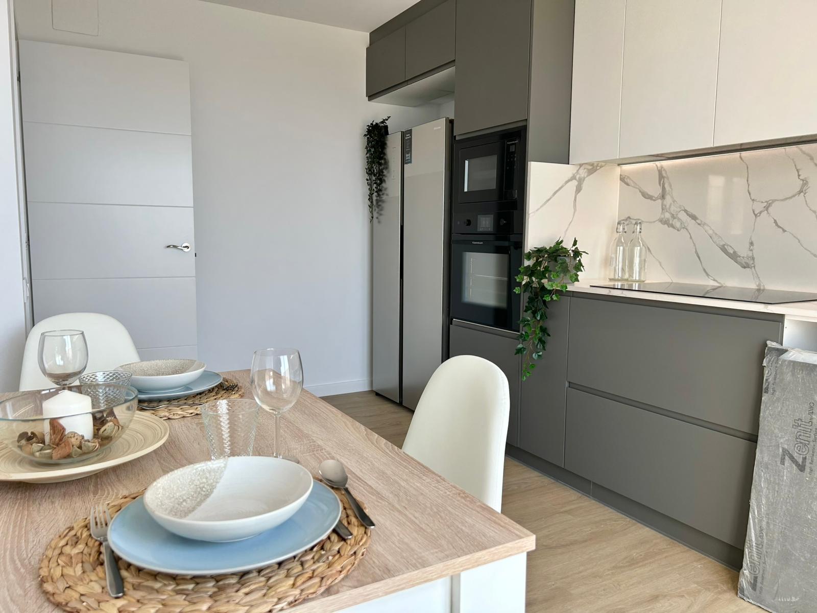 En el nivel intermedio se encuentra la zona de día, con una cocina totalmente equipada, un acogedor salón con Smart TV y un amplio comedor preparado para 8 a 10 personas. Todo pensado para compartir momentos en familia o con amigos en un ambiente de lujo y comodidad.