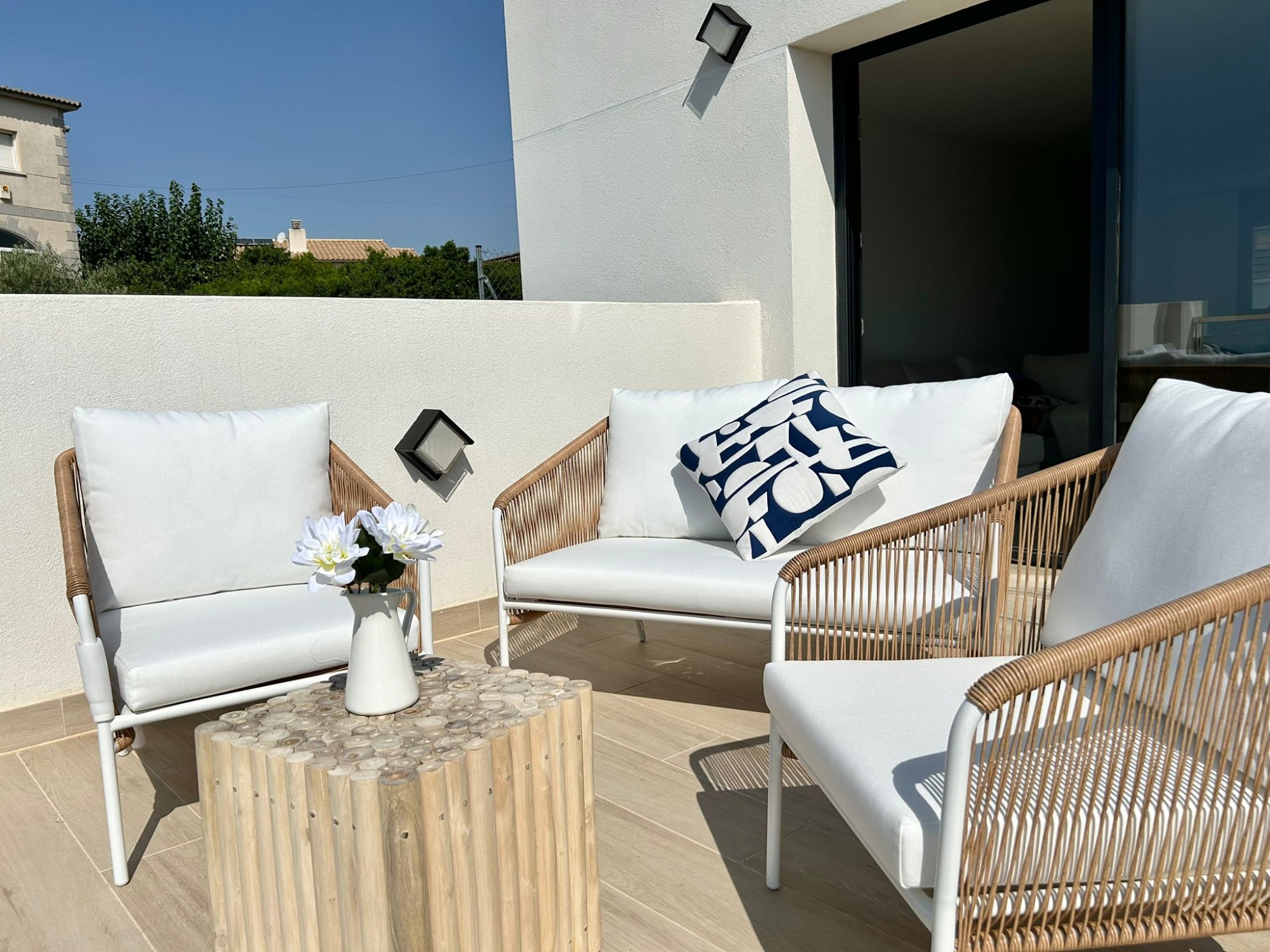 Cada nivel cuenta con una amplia terraza que invita a relajarse, tomar el sol o compartir una comida al aire libre con la posibilidad de preparar un barbacoa mediterránea.